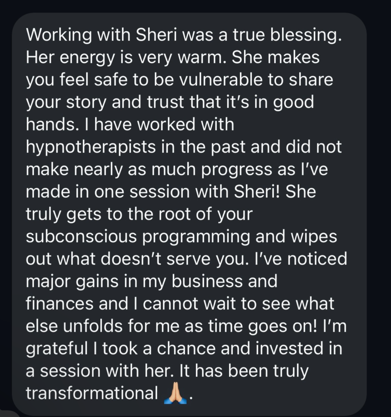 I’m Sheri Elizabeth—a certified hypnosis practitioner and metaphysical teacher, and this space is your sanctuary for powerful, transformational hypnosis designed to help you reprogram your subconscious and align with your highest reality.